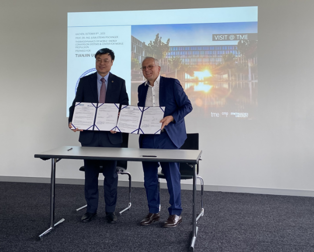 访问亚琛工业大学期间,该校机械工程学院院长Wolfgang Schr?der、移动能源转换系统热力学主任(FEV集团总裁)Stefan Pischinger与代表团会谈会见。双方共同回顾了长期愉快的合作历程。Pischinger教授简要介绍了亚琛工业大学基本情况及移动能源转换系统热力学研究所最新研究进展。金东寒表示,两校学科专业发展相似,学科设置高度匹配,人才培养定位高度契合,希望尽快在储能、氢燃料发动机等领域开展学生交流、教师互访、联合科研等方面的实质性合作。会谈期间,Pischinger和金东寒代表两校签署了学术合作协议。双方表示,将以签署的协议为基础,通过人员交流与教师互聘深化机构间人才培养及科研合作。