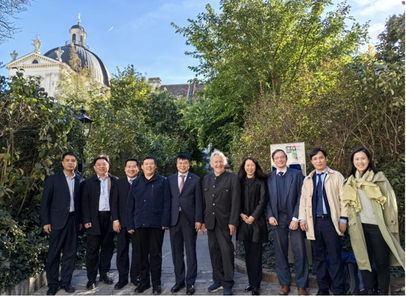 访问维也纳技术大学期间,该校主管科研、创新与国际合作副校长Peter Ertl与代表团会谈会见。Peter Ertl对于学校代表团的来访表示热烈欢迎,介绍了维也纳技术大学的发展历程、优势学科、科学研究以及国际化,特别是学生国际化培养等方面的情况。金东寒感谢维也纳技术大学的热情接待,简要介绍了近年来学校的发展情况,特别是储能平台建设情况。经过深入交流,双方希望在绿色低碳、动力系统和生物化工等领域开展教师互访、学生联合培养以及合作科研。会期间,代表团参观了车辆驱动和汽车技术研究所以及分析仪器中心,就在相关领域开展师生互访、科研合作以及培训等事宜进行了充分的交流和讨论。随后,金东寒看望了在维也纳技术大学就读的我校学生。