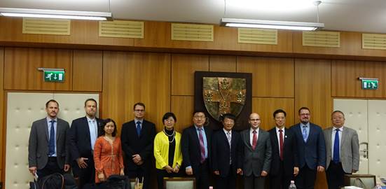 12月18日,代表团到访佩奇大学,该校国际事务副校长Jozsef Betlehem、工学与计算机学院院长Gabriella Medvegy、理学院副院长Ferenc Jakab、国际关系中心主任Istvan Tarrosy、孔子学院中方主任毛红等会见代表团。Jozsef Betlehem副校长向代表团介绍,佩奇大学是匈牙利的第一所高校,至今已有650年的历史,目前吸引了来自10余个国家的4000名国际生,其中来自中国的学生超过400余人。他特别指出,佩奇大学孔子学院同天津大学在斯洛伐克技术大学建立的孔子学院联系紧密,双方可以将孔子学院作为平台,在更多领域开展合作。随后,张凤宝副校长简要介绍了天津大学的发展概况、英文学位项目及奖学金项目,并表示双方高校可以进行院级层面的科研合作。会谈之中,双方就开展学生暑期项目、“中国与中欧国家科技创新大学联盟”建设等具体议题进行深入交流。