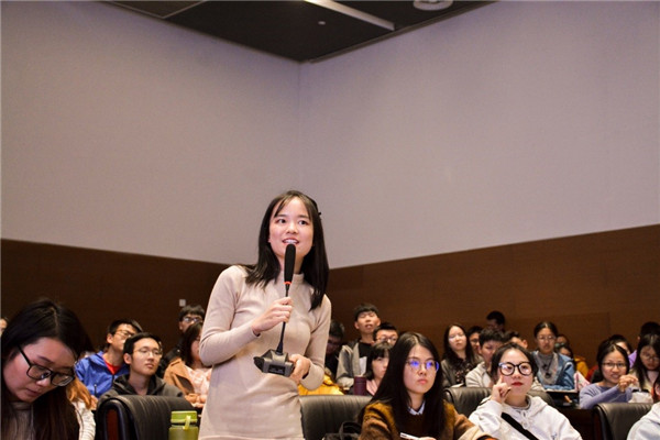 在观众互动环节,三位同学从不同方面提出自己的见解和疑惑,与Jens Nielsen教授进行深入交流。讲座尾声,学生代表向Jens Nielsen教授赠予天津大学钦字第一号考凭纪念版与《北洋大讲堂》一书以示感谢并合照留念。