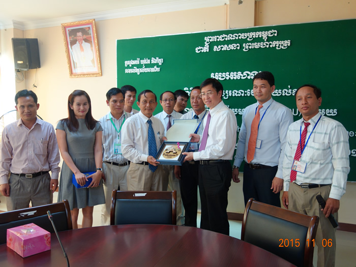 在柬埔寨,代表团访问了棉则大学(Meanchey University),会见了副校长Chea Sern、Hill Sothea,并受到了该校管理学院、科技学院、农学院等学院院长的热情欢迎。他们介绍了棉则大学的学校历史、学科设置及发展现状,表示这是第一次有中国一流大学代表团来校访问,希望能借此机会与天津大学开展在学生交换、教师互访等方面的交流与合作。代表团也介绍了天津大学的历史、发展成就及科研优势,并对棉则大学的合作意向作出了积极回应,热情回答了该校老师们对来华研修和学习可能会遇到的问题。之后,代表团参观了学校的图书馆。