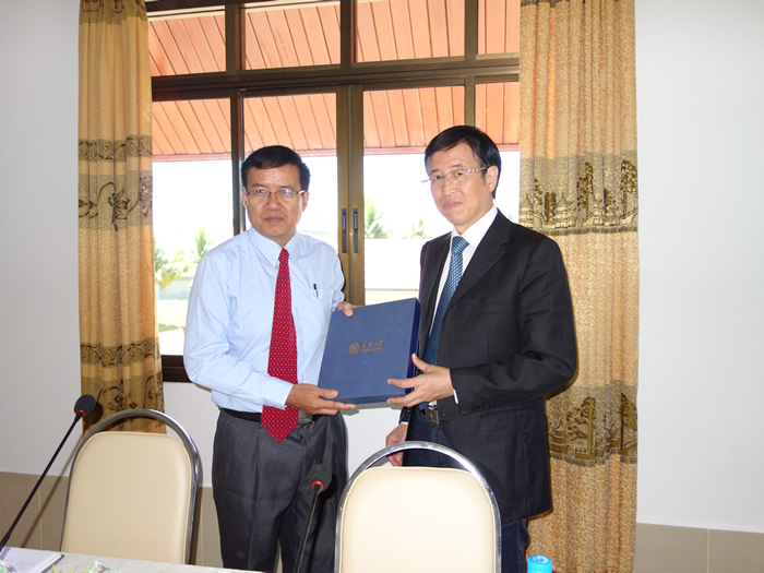 在老挝,代表团首先来到位于巴色的占巴塞大学(Champasack University)。该校副校长Phonesavanh Thepphasoulithone博士介绍了学校的整体情况,并回顾了2014年9月中国-东盟工科大学联盟在贵阳成立时的情景,她希望通过联盟的平台,推动与天津大学在内的中国高校合作。代表团也介绍了天津大学的发展现状及中国-东盟工科大学联盟的工作进展。双方一致同意在联盟的框架之下加强合作。在老挝期间,李家俊一行还访问了沙湾拿吉大学(Savannakhet University)。该校校长Bounpong Keorodom教授、副校长Sitha Khemmarath教授以及各学院代表热情接待了代表团。Bounpong Keorodom校长简要介绍了学校的总体情况,并希望与天津大学开展合作,促进其工科教育的发展。李家俊对学校的热情欢迎表示感谢,他简要介绍了天津及天津大学的发展历史和建校120年来所取得的成绩,表示将积极支持两校合作伙伴关系的深化。在会谈中,双方探讨了在学生交流、科学研究等方面合作的可能性,并达成了初步的合作共识。访问柬埔寨与老挝期间,代表团还进行了招生宣讲,向当地学生介绍了我校国际教育,以及包括化学工程在内的工科教育情况,特别是我校已经开展的全英文教育项目,受到当地学生非常热烈的响应,每次宣讲活动都人头攒动,学生们踊跃提问,对来华读书反响非常积极。