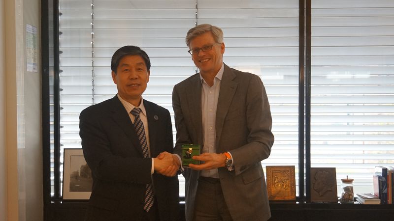 访问阿姆斯特丹自由大学(VU)期间,校长Jaap Winter会见代表团一行。Winter校长对我校代表团首次到访表示热烈欢迎,简要介绍了阿姆斯特丹自由大学在学科布局、学术影响力以及交叉学科发展等方面的情况。刘建平介绍了学校历史沿革、优势科学以及与校企合作等有关情况,并详细介绍了以新校区建设推动学科族群,以及社会科学与工学学科融合发展的相关理念与做法。双方希望尽快推动双向学生流动,就学分互认、学位互授、资助模式等共同感兴趣的话题进行了深入探讨。双方一致认为,两校在学科布局上形成优势互补,希望尽快确定重点合作领域,借助更多的外部资源,促进高水平科研合作,带动创新人才培养。随后,代表团与阿姆斯特丹自由大学国际处以及理学院代表就如何开展双学位项目、暑期学校和合作科研等进行深入的探讨。