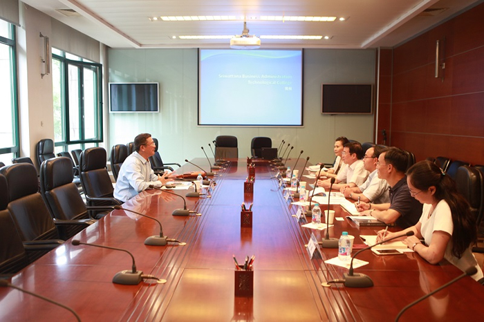李校长首先对黄校友重返母校表示热情欢迎,并对于黄校友在2015年我校代表团赴泰参加“中国-东盟工科大学联盟”首届工作会议时的热情接待表示感谢。黄校友简要介绍了目前在泰的工作以及他本人对泰国和中国教育合作的关心。李校长表示,我校作为“中国-东盟工科大学联盟”常任主席单位和常设秘书处所在地,非常重视与东南亚国家,尤其是“一带一路”沿线国家开展教育合作。泰国位处东盟中心,在区域的影响力很大,泰国有两所高校为“中国-东盟工科大学联盟”成员,也在联盟内部发挥着重要作用。他指出,天津大学将一如既往地积极推进与东盟地区高校的务实合作,为“一带一路”战略在东盟地区的实施做出贡献。随后,黄校友与建筑设计规划研究总院就双方感兴趣的合作项目展开热烈探讨。会谈中,各方就合作意向及未来工作安排达成初步共识。