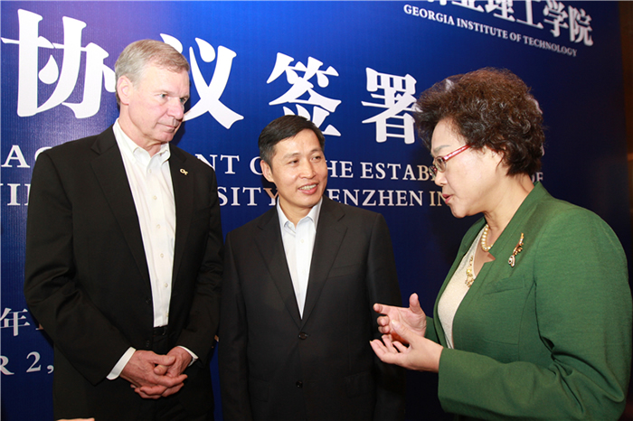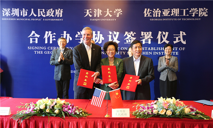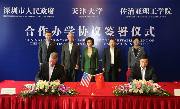 12月2日,天津大学校长钟登华与美国佐治亚理工学院校长巴德·彼得森、深圳市副市长吴以环共同签署了《深圳市人民政府 天津大学 佐治亚理工学院 关于在深圳合作办学的协议》,三方承诺共同建设天津大学佐治亚理工深圳学院,培养具有全球视野、创新精神和实践能力的卓越人才,聚焦国际学术前沿开展学术研究,构建世界一流水平的特色学院,打造我国中外高水平合作办学的典范。