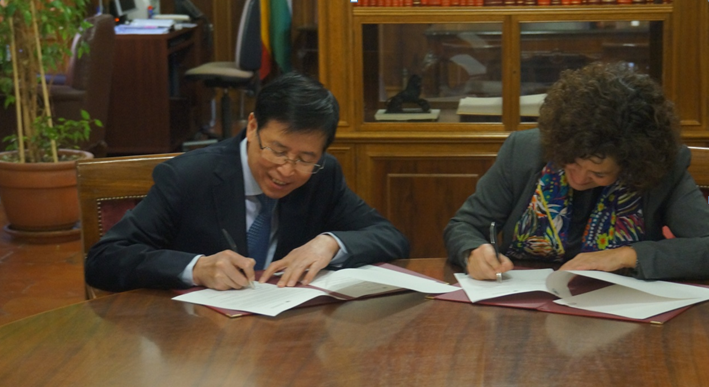 访问格拉纳达大学期间,该校校长Pilar Aranda女士会见我校代表团。Aranda校长首先对我校代表团的到访表示热烈欢迎,简要介绍了格拉纳达大学的发展历史、规模和优势学科。李家俊对Aranda教授成为该校近500年历史上第一位女校长表示祝贺,并简要介绍了学校的历史沿革、优势学科、以及双校区发展情况,希望能与格拉纳达大学在学生交流交换以及科研合作等领域加强合作。随后,双方就如何充分利用中国国家留学基金委公派研究生项目,推动研究生联合培养等问题进行了深入的交流与讨论。会谈期间,Aranda校长和李家俊书记代表两校签署了《合作谅解备忘录》和《学生交换协议》。双方希望尽快开展学生交流与交换项目,并进一步推动基于Erasmus+项目的学生教师的双向流动。会谈结束后,代表团访问了理学院和建筑学院,就如何开展学生联合培养和合作科研等共同感兴趣的话题进行深入的探讨。在访问期间,李家俊会见了我校在格拉纳达大学联合培养的公派研究生,鼓励他们尽快完成学业回到母校,搭建两所高校友谊与合作的桥梁。