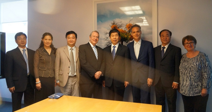 访问昆士兰大学期间,该校校长Peter H?j会见了我校代表团,该校常务副校长Deborah Terry教授、主管科研的副校长Max Lu,主管国际事务的代理副校长Andrew Everett先生陪同会见。中国驻布里斯班总领馆总领事赵永琛、领事刘万亮应邀出席了相关活动。Peter H?j校长首先对我校的到访表示热烈欢迎,并回顾了他今年3月率该校代表团访问我校时被授予名誉教授、做客北洋大讲堂、访问滨海工业研究院等相关活动,并简要介绍了两校依托共建的孔子学院开展的全方位合作。他指出,在两校校领导的大力支持下,孔子学院各项工作运营良好。特别是在双方的共同努力下,昆士兰大学得到了汉办的大力支持,他本人已被汉办任命为高级顾问。同时,两校3月份达成在地下火领域开展合作事宜也取得了新的进展,并申请到了澳大利亚政府的资助,该项合作将为环境保护领域做出一定贡献。刘建平对昆士兰大学的热情接待表示感谢,非常高兴与老朋友重逢,并结识新朋友。刘建平表示,在双方共同努力下,两校在教学科研等诸多领域紧密合作,孔子学院发展良好,形成自身特色,也日益成为两校及中澳合作的桥梁。作为老朋友,非常高兴看到昆士兰大学近来的发展,特别是Peter H?j校长上任后开拓了新的合作伙伴。随后,双方就在人员培训等领域开展合作交换了意见并达成了共识。赵永琛总领事对于两校的合作成果给予了充分的肯定,并表示会继续支持今后两校的合作。