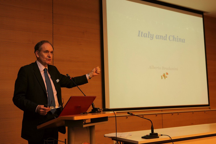 随后,白达宁大使在北洋大讲堂上与天大学子亲切交流互动,就欧盟、中国与意大利的关系与共赢发展为天津大学的学子作了深入的讲解剖析。大使先生通过对中国与欧盟经济贸易情况的分析,强调中国近年在经济与政治方面有了长足的发展,表示中意可通过农业、健康、环境及城市化等重点领域的互惠合作,共求发展。此外,大使还与我校学子们分享了对于中意经贸合作优势、意大利留学等问题的观点看法。