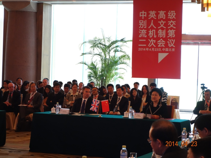 4月23日,“中英高级别人文交流机制第二次会议”在北京举行。中英双方在京开展了一系列人文交流活动。天津大学校长李家俊分别参加了“中英大学校长圆桌对话会”、“第七次中英部长级磋商”和“中英高级别人文交流机制第二次会议”。该机制中方主席、中国国务院副总理刘延东与机制英方主席、英国卫生大臣Jeremy Hunt共同主持了主题为“交流互鉴,共享未来”的“中英高级别人文交流机制第二次会议”并分别致辞。刘延东宣读了中国国务院总理李克强的贺信。该会议是“中英高级别人文交流机制”成立以来在中国召开的第一次会议,来自中英双方教育、文化、体育、科研等各界代表及学生代表近百人参加了此次盛会。会上,李家俊亲切会见了我校参会学生代表。