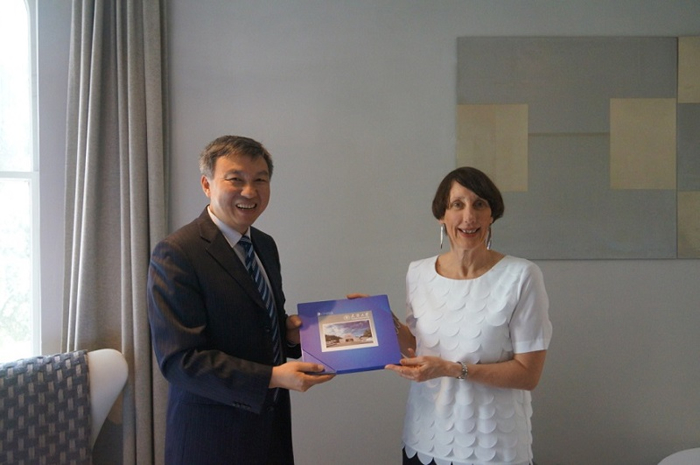 座谈会结束后,代表团拜访了中国驻墨尔本总领事馆教育组。赵江参赞简要介绍了领区内澳大利亚高校的情况,以及与中国高校合作的情况,指出教育组特别希望推动国内高校与澳大利亚高校开展实质性合作。舒歌群对赵江参赞的热情接待表示感谢,介绍了天津大学与澳大利亚大学的整体合作情况,特别是与墨尔本大学、皇家墨尔本理工学院的合作情况,并指出希望借助教育组这一平台能与澳知名高校建立更为实质的合作,延揽优秀的留学人员到学校工作。
