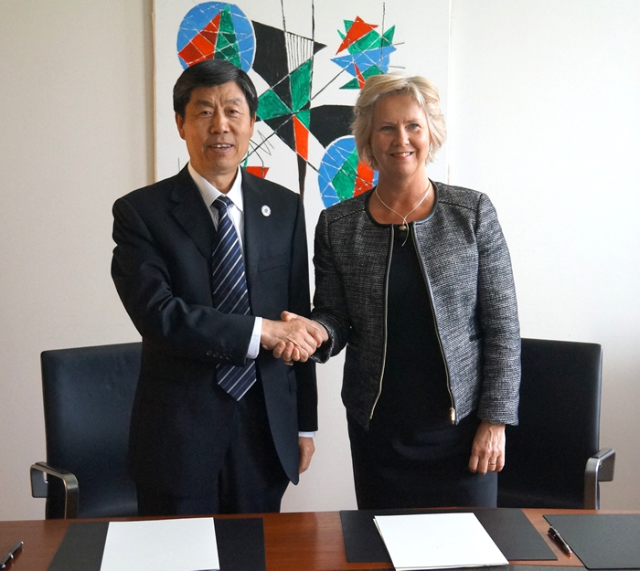 访问冰岛大学期间,该校校长Kristín Ingólfsdóttir和主管学术事务副校长Jón Atli Benediktsson会见我校代表团。Ingólfsdóttir对我校代表团首次到访表示热烈欢迎,并简要介绍了该校在学科布局、院系设置、学位课程、国际教育以及跨学科发展等方面的情况,特别指出其极地研究汇聚了工程、能源、人文与社科等众多优势学科领域。刘建平介绍了我校历史沿革、优势科学以及国际合作等相关情况,并详细介绍了以新校区建设推动学科族群与交叉学科发展的相关理念与做法。双方就如何推动教师交流与学生交换进行深入探讨,希望尽快确定重点合作领域,借助更多的外部资源,促进高水平科研合作,带动创新人才培养。随后,双方共同签署了合作谅解备忘录以及学生交换协议。