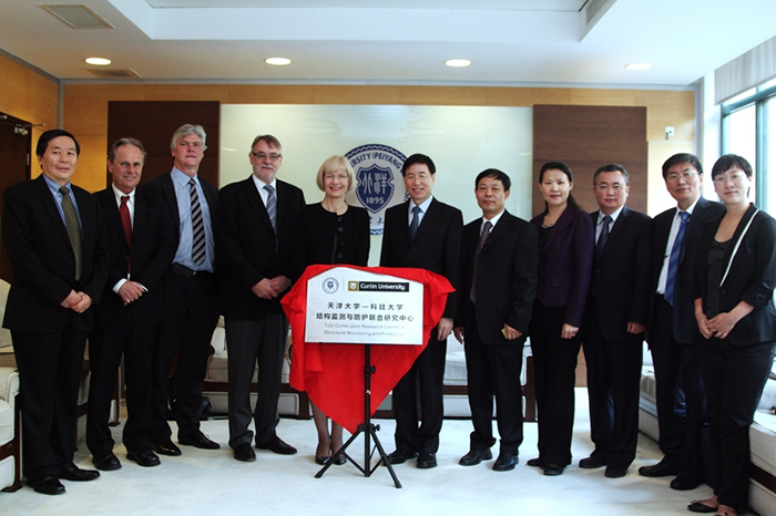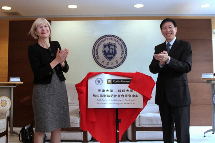 随后,双方校长为“天津大学-科廷大学结构检测与防护联合研究中心”揭牌,标志该中心正式成立。我校多个学院的代表将于近期与科廷大学代表在津开展工作会谈,就具体合作进行对接。