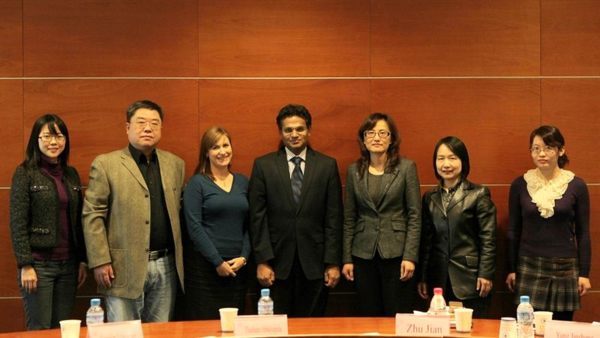 3月6日,澳大利亚国立大学计算机科学与工程学院工程研究系主任Thushara Abhayapala教授、国际关系专员Jennifer Schroeder在澳大利亚国立大学驻北京办事处代表的陪同下访问天津大学。我校信息学院副院长杨晋生,精仪学院副院长蔡怀宇,及国际合作与交流处、教务处相关负责同志参加了工作会谈。 杨晋生首先对澳大利亚国立大学代表团的来访表示欢迎,并介绍了天津大学的历史沿革、优势专业以及信息学院概况。蔡怀宇随后介绍了精仪学院的基本情况。Thushara Abhayapala教授十分感谢我校的热情接待,并对澳大利亚国立大学做了简要介绍。他表示,非常高兴有机会访问中国第一所大学——天津大学,并期待在两校间建立本科生及研究生合作项目,开展教师互访及科研合作。会谈中,双方就合作方式及项目优势进行了初步探讨。