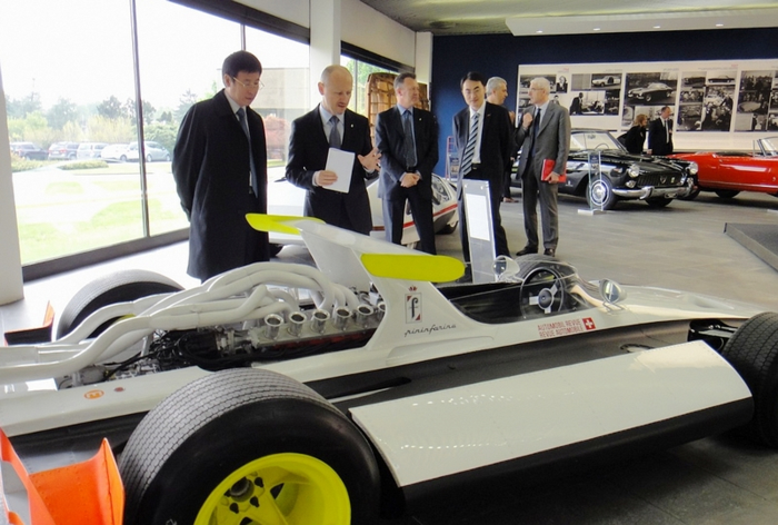 应首席执行官Silvio Angori邀请,李家俊在参加完“中欧高级别人文交流对话论坛”后专程访问了位于意大利都灵的宾尼法瑞纳设计公司,与其首席执行官Silvio Angori、主管市场和销售的副总裁Matteo Gera、主管产品和发展的副总裁Andrea Maria Benedetto、主设计师Fabio Filippini、工程部负责人Roberto Ronco以及人力资源部负责人Roberto Mattio等人就今后可能开展的合作进行了深入交流。访问期间,李家俊和Silvio Angori分别代表双方签署了《中国天津大学与意大利宾法公司合作谅解备忘录》,拟共同推进中国汽车产业的发展。
