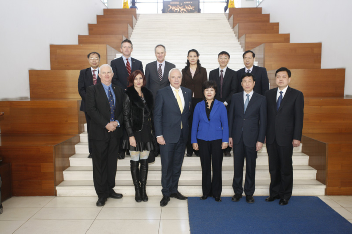 4月11日,新西兰基督城市长鲍勃·帕克(Mr. Bob PARKER)率团一行6人到天津大学访问。天津市教育工委书记朱丽萍在天津大学会议楼贵宾室会见了代表团一行。天津大学校长李家俊,天津市教委主任王璟以及市教委国际交流处、天津大学经管学部、国际合作与交流处的相关负责人陪同会见。