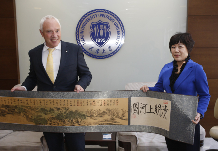 鲍勃·帕克先生首先对于天津的市政建设予以了高度的评价。他提到,通过参观天津大学的校史馆,代表团一行对于天津大学悠久的历史与内涵有了深刻的了解,进而让他更加了解天津,了解中国。习近平主席在本月7日会见新西兰总理约翰·基时提出中新双方要加强地区合作机制建设、加快经济一体化进程,帕克先生对此十分赞同与支持。他提到现在已有不少天津大学的毕业生到坎特伯雷大学继续深造,他们代表了现代中国的形象,也为基督城注入了新的活力。他希望更多天大学子到基督城学习,作为友谊的桥梁为基督城和天津市合作交流作出贡献。