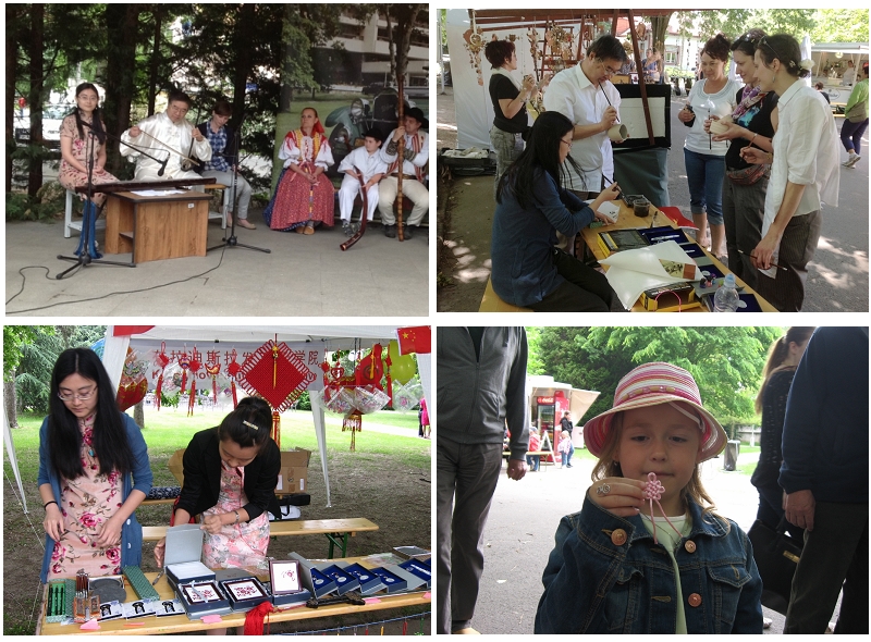 布拉迪斯拉发孔子学院师生带去的灯笼、青花瓷、中国结、剪纸、文房四宝等中国味儿十足的手工艺品一经展出,立刻赢得四方游客的喜爱。孔子学院代表现场展示的手编中国结、中国书法及吹笛子等技艺,引来大量游客驻足观看,有的跃跃欲试,想亲身体验中国独特的文化。