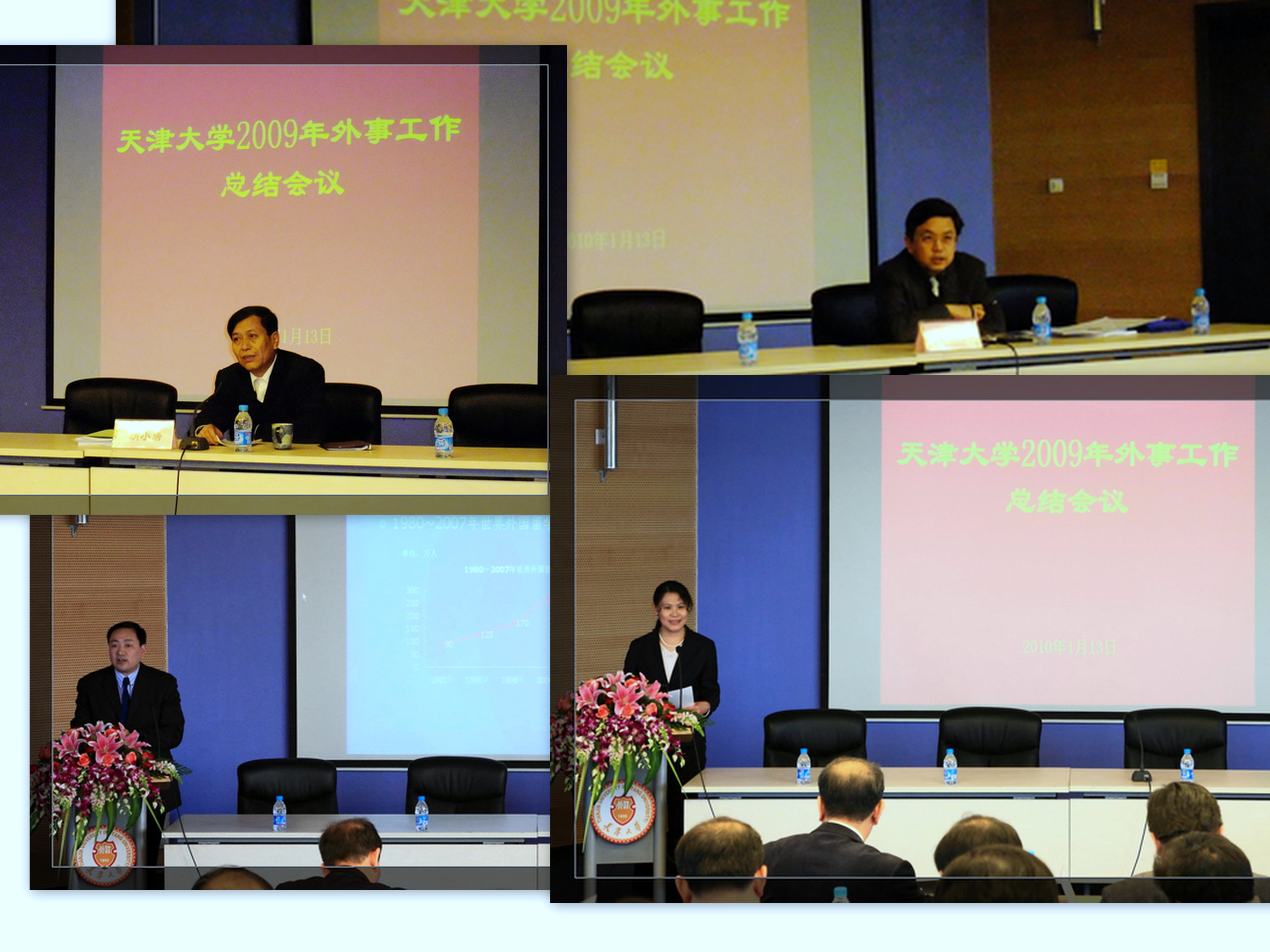 1月13日,天津大学2009年外事工作总结会议在会议楼召开。校长龚克、副校长胡小唐及机关各部处、直属单位、学院负责人百余人出席了本次会议。