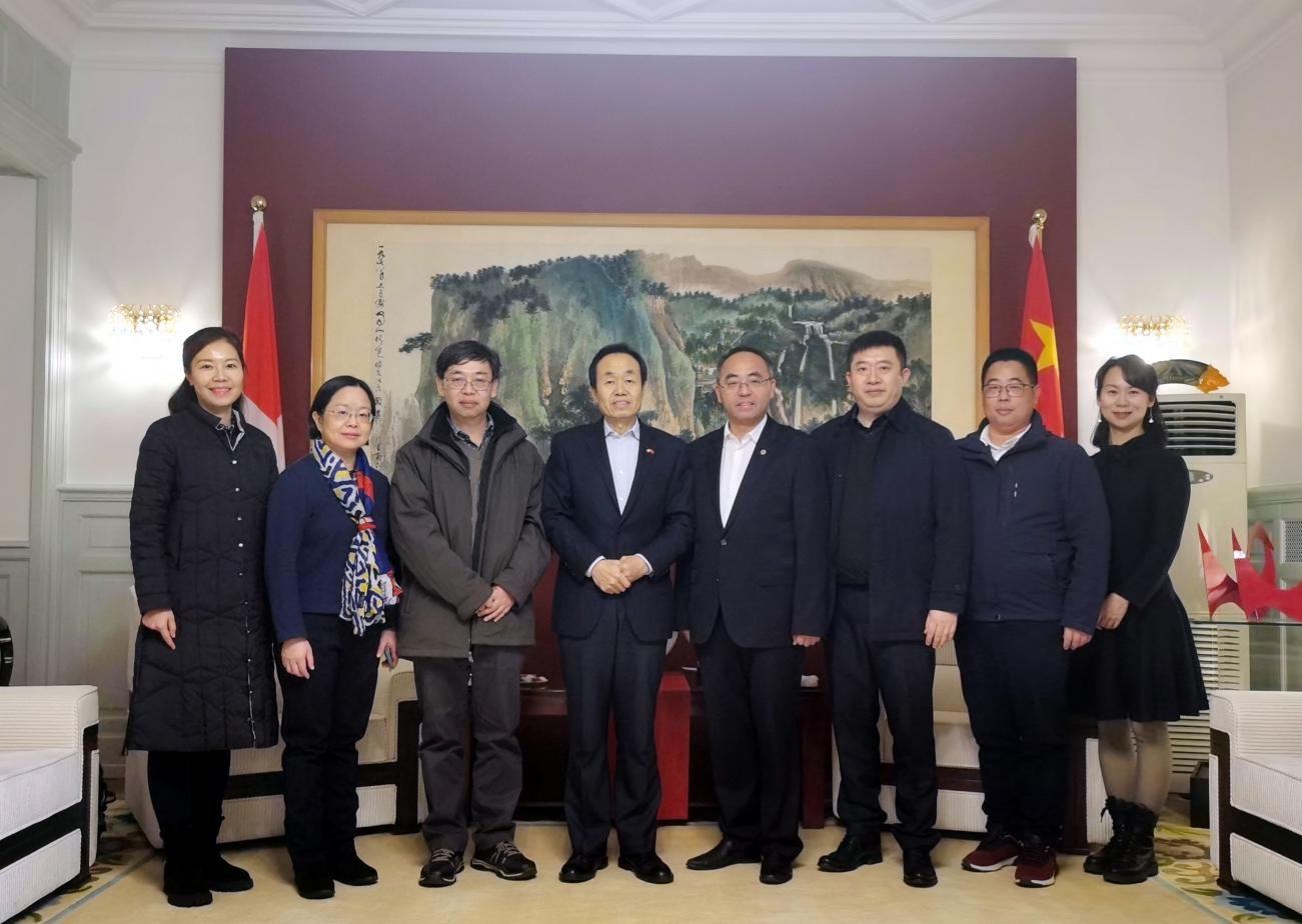 瑞士时间12月4日,天津大学常务副校长胡文平一行拜访中国驻瑞士大使馆。中国驻瑞士大使王世廷,教育参赞侯健,教育处二秘尹岩松,教育处三秘唐伊亮出席,天津大学访团成员还包括生物安全战略研究中心主任张卫文,法学院副教授王蕾凡,生物安全战略研究中心宋洁。