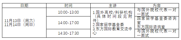 本次活动分为国家公派出国留学政策解读及项目宣讲、国外高校/科研机构留学资讯及招生信息讲座、国外高校/科研机构与国内学生一对一面试等部分。其中政策解读、项目宣讲和招生讲座等将以录播形式供在线观看,现就“一对一面试”报名事宜通知如下: