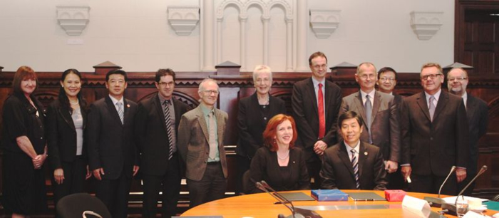 Afterwards, the TJU delegation visited the University of Western Australia and RMIT respectively, where they were warmly received by the leaders of the two universities. During his visit to the two universities, Chairman Liu presented an overview of TJU history and development, its disciplinary layouts, research strength, national prizes, research industrialization and cooperation with Australian universities. He especially mentioned that the rapid economic and social development and opening up of Tianjin Binhai New Area had been brought into the overall national development strategy, which offered TJU new opportunities and challenges as well. He also expressed his hope that the cooperation between the two universities could be further deepened with more mutual beneficial programs so as to better serve the development of the two universities as well as the cities where the two universities are located. There was a very positive response by the leaders of the two Australia universities. A further discussion was held on cooperation details. At RMIT, a Cooperative Agreement on Graduate Education was signed according to which RMIT would waive tuition and academic fees for six TJU students each year to obtain PhD degrees or join in a collaborative educational program at the Ph.D. level at RMIT. This agreement provided a foundation for future cooperation on teaching and scientific research between the two universities.