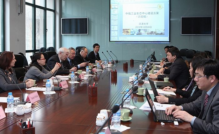 During the meeting, Honorary President Xu and Chief Secretary Nikolay recalled the consensus reached between the two countries on the Sino-Russian Center of Industrial Ecology and discussed the progress of its establishment. President Zhou pointed out that CAE, Tianjin municipal government and TJU would work together to build the Center. He also stressed that the Secretary of the CPC Tianjin Municipal Committee Zhang Gaoli attached great importance to this initiative. According to Executive Vice-President Pan, as the research achievements of Russia being first applied in Tianjin, cooperation on a larger scale would be promoted. He then presented the strength of TJU as a research university as well as the characteristics of Tianjin and prospected for further cooperation between both sides.