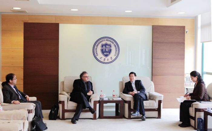 On March 29, 2013, Tianjin University (TJU) President Li Jiajun met with Professor Plinio Innocenzi, Counsellor for Science and Technology of the Embassy of Italy in Beijing, and Dr. Xing Jianjun, China Area Chief of Italy Education Center.