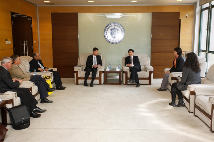 On October 23, 2013, Professor Michael Frater, Rector of the Australian Defence Force Academy of the University of New South Wales (UNSW), led a delegation on a visit to Tianjin University (TJU). The delegates included heads of the academy’s four schools, including the School of Humanities and Social Science,the School of Physical, Environmental and Mathematical Sciences, the School of Business, and the School of Engineering and Information Technology, and Associate Dean (International). President Li Jiajun met with the guests.