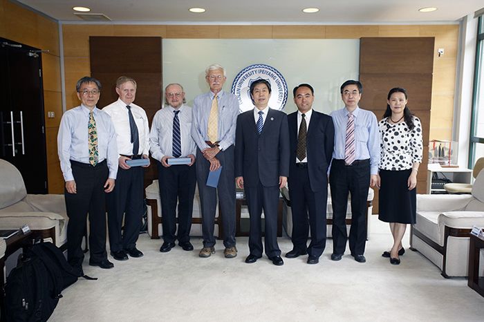 On May 19, 2014, Tianjin University (TJU) welcomed four experts of the Visiting Committee of the School of Electronic Information Engineering (SEIE). They were: Dr. Dennis Buss, Chief Scientist and former President of Texas Instruments; Dr. Peter Staecker, President and CEO of the Institute of Electrical and Electronics Engineers (IEEE) in 2013; Dr. Robert J. Trew, Chair of the Electrical and Computer Engineering Department of North Carolina State University and former President of the IEEE Microwave Theory and Techniques Society; and Dr. Y. Edmund Lien, an EDA/IC expert, winner of 1993 “Friendship Award” of China and former General Manager of the national IC-CAD project of the Ministry of Industry and Information Technology of China.