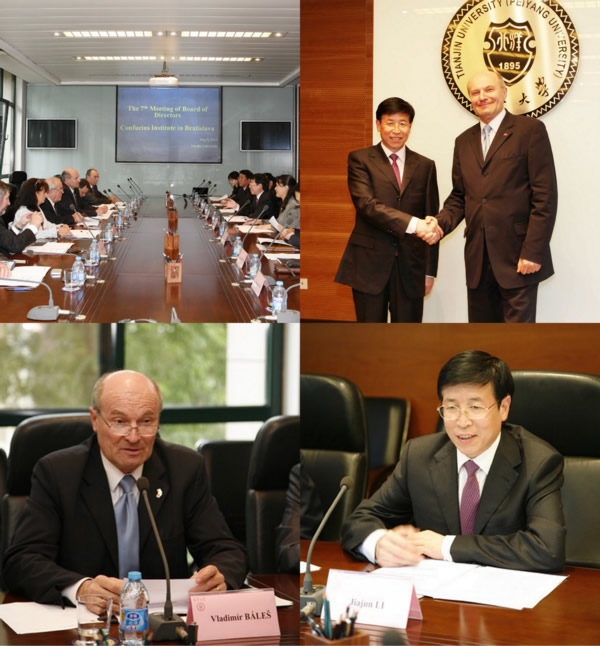 During the Board Meeting, the resignation of Ke Gong, the former President of TU, as Vice Chairman of Board of Directors was approved, and President Jiajun Li was elected as the Vice Chairman. Chairman Vladimír BALES expressed his appreciation on behalf of the board members to former President Ke Gong, one of the founders of the Confucius Institute in Bratislava, for his great contributions to the Institute. As newly elected Vice Chairman, President Li expressed his hope that through the platform of the Confucius Institute, mutual exchanges and substantial cooperation could be further promoted with the joint efforts of both sides. Subsequently, the minutes of the 6thboard meeting, the activities at the Confucius Institute in the year of 2010, the fiscal budget, as well as the 2011 work plan and budget were reviewed and approved. Later, both sides exchanged views on the launch of Confucius classrooms, the dispatch of the Chinese teachers and volunteers. And a consensus was set for the date and venue for the 8thBoard Meeting.