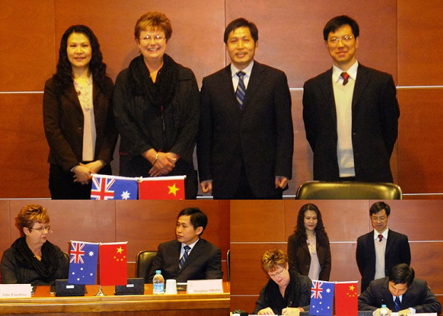 Vice-President Denghua Zhongextended his warm welcome to Acting Vice-PresidentEisenbise, and briefed her on TU’s history, strength in education and research, and international cooperation. Vice-President Zhong expressed his hope for long-term substantial cooperation between the two universities under the framework of the MoU signed last year, especially in terms of student cultivation, faculty exchange, joint research and other mutually beneficial programs. Acting Vice-PresidentEisenbise also gave an overview on the education and research, and international exchanges of RMIT, and showed strong interest in collaboration with TU on student exchange and summer program. Both sides reached at a common ground on research collaboration in the areas of climate change and new energy. During the meeting, Vice-President Denghua Zhong and Acting Vice-President Julie Eisenbise signed Letter of Intent for Cooperation on CSC Program on behalf of the two universities.