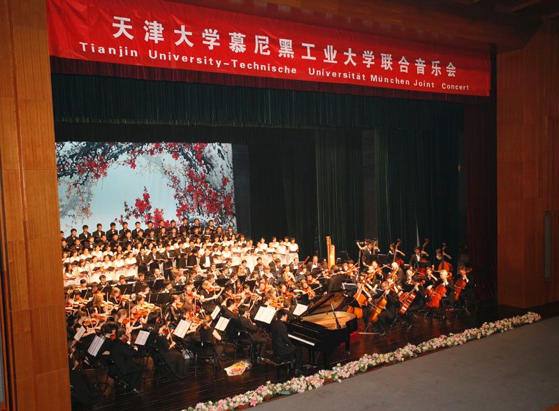 On May 28th, a special musical feast was jointly put together by Peiyang Art Group of Tianjin University and the Symphonic Ensemble Munich of Technical University of Munich. Peiyang Chorus also joined the performance with their special “sound of nature”. At Tianjin Lakeside Theatre, over eight hundred people were present at the gala, which also marked as a mile stone of cooperation between Tianjin University of China and the Technical University of Munich of Germany, both of which are well known for their academic excellence.
