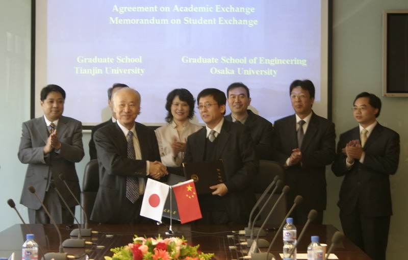 On Nov. 23rd, 2007, a delegation from Graduate School of Engineering, Osaka University headed by Prof. Masao Toyoda, Dean of the School, visited Tianjin University. Prof. SHU Gequn, Vice President of TU met the guests. Prof. HAN Jinyu, Vice Dean of Graduate School, Prof. CUI Zhenduo, Dean of School of Materials Science and Engineering, Prof. QIU Zurong, Vice Dean of School of Precision Instrument and Optoelectronics Engineering and Prof. YANG Fuling, Director of International Cooperation Office attended the meeting. VP SHU Gequn extended warm welcome to the guests and gave a brief introduction to Tianjin University, including its history, education, research and international collaboration, especially the collaboration with Japanese universities. Prof. Masao Toyoda expressed his appreciation for the hospitality extended to the delegation during their visit and delightedly recalled his experience of being entitled as TU honorary professor in 1993. Both sides expressed their hope to strengthen mutual understanding and enhance cooperation through the student exchange program. After the meeting, Prof. Han Jinyu and Prof. Masao Toyoda, on behalf of the two sides, signed the Agreement for Academic Exchange and Memorandum for Student Exchange between Graduate School, Tianjin University and Graduate School of Engineering, Osaka University. According to the Agreement and Memo, there will be a full-scale collaboration between the two universities in terms of student and faculty exchange, joint research, sharing of educational resources, etc., and each year, no more than 5 graduate students from either university may be enrolled at the partner university within one academic year. During their visit, the delegation visited Tianjin University Archives and some labs in School of Precision Instrument and Optoelectronics Engineering and School of Materials Science and Engineering. Prof. Masao Toyoda also gave a representation on “New Phase of Research Strategy in Japan and Research Activities of Graduate School of Engineering, Osaka University” to TU faculty and students. Founded in 1931, Osaka University has been one of the seven earliest national universities in Japan. The University has 11 faculties/schools, 15 graduate schools, five research institutes, 23 facilities affiliated with the faculties/schools, graduate schools or research institutes, libraries with two branch, two hospitals, 17 university and 3 nationwide joint-use facilities. There are about 4,900 teaching and administrative staff and 20,600 students.